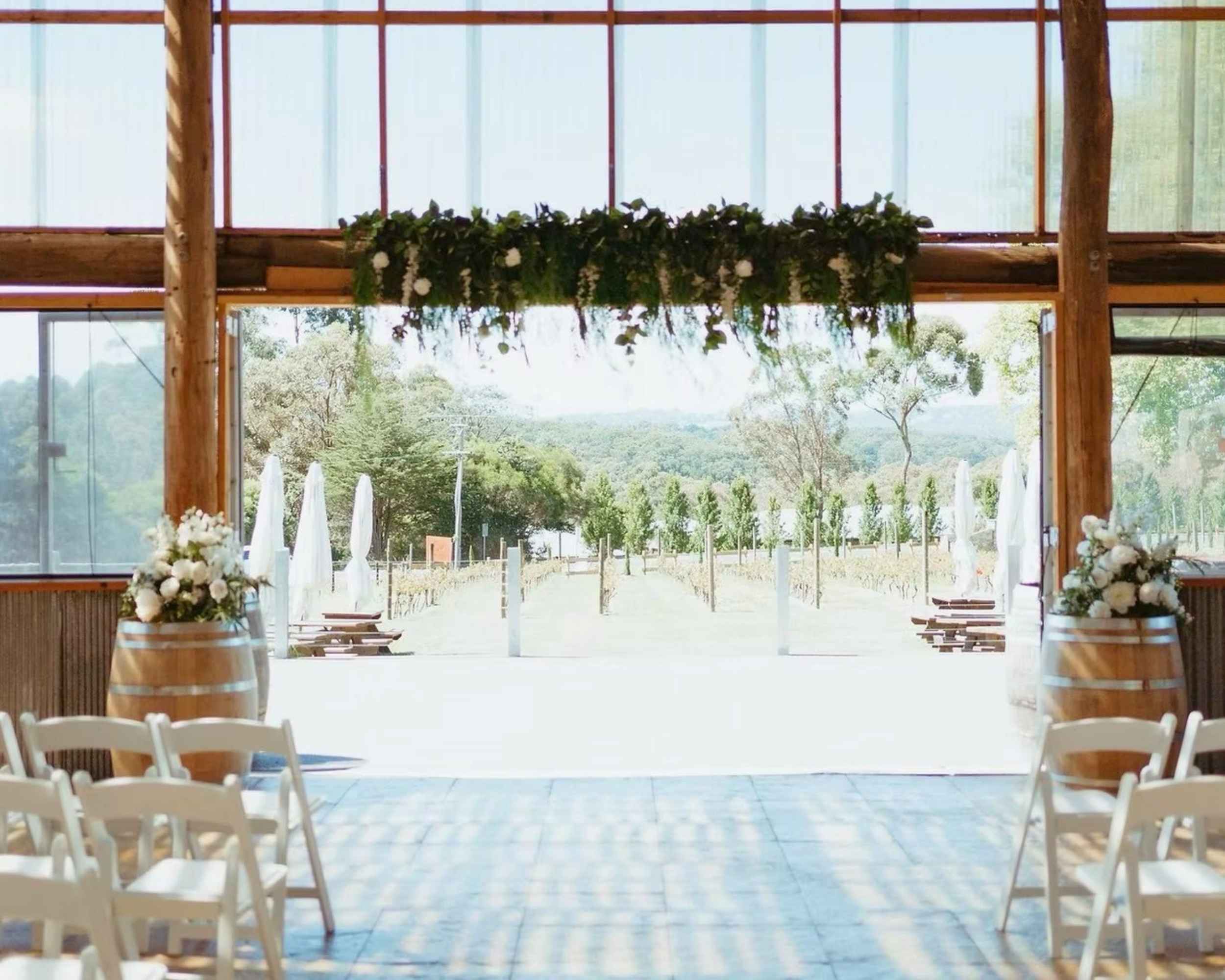 Owned and operated by the Carlei family, this certified organic estate provides a peaceful and dignified environment for farewelling a loved one. The property features multiple flexible spaces including La Terrazza — a covered terrace blending indoor comfort with the beauty of the surrounding vineyards — a fairy-lit winery room ideal for reflective gatherings, and a rotunda with sweeping views across the estate.